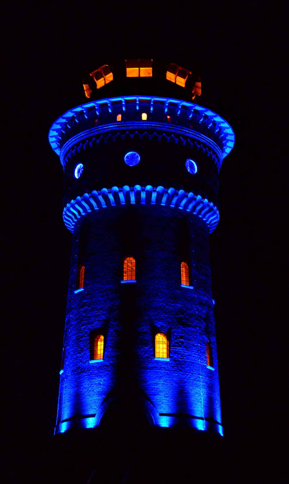 Diese Beleuchtung beginnt in der Regel am Abend und schafft eine festliche Atmosphäre, die sowohl Einheimische als auch Touristen anzieht. An normalen Tagen ist der Wasserturm jedoch nicht regelmäßig beleuchtet.